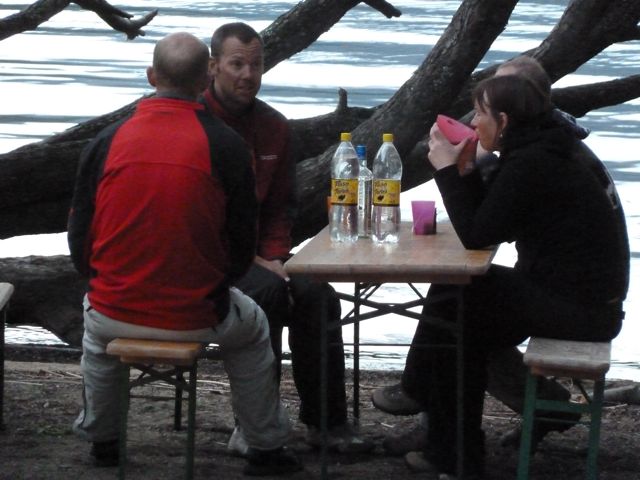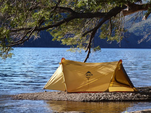 Climbed from 200 to 800 m and rolling along. Anna disappeared as much faster downhill. A beautiful lake appears on the right and I hit the national park gates. Cycle through some primal forest. Massive trunks and mossy understory and finally reach e camp tired as the dirt road is wearing. Beautiful spot on the lakes edge in full sun. Tables set for dinner on the water edge. Up with the tent still damp from last night. Soon drys.