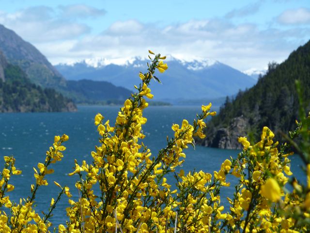 The town sits beside one of the lakes. Very pretty dark blue water surrounded by snow capped hills. Anna gone, start off with Alfonse & Monique. Long climb on sealed. Great scenery looking back to the lake, grassy farmland and slopes timbered. Lots of photo stops. By myself and scenery gets more rugged with towering rocky peaks surrounding. Rear wheel grinding. Stunning. Tiring then start on a rolling downhill 1.5k to go and stop at a beautiful waterfall. Then roll into camp. Beautiful spot next to a lake again with rugged snow capped mountains around.